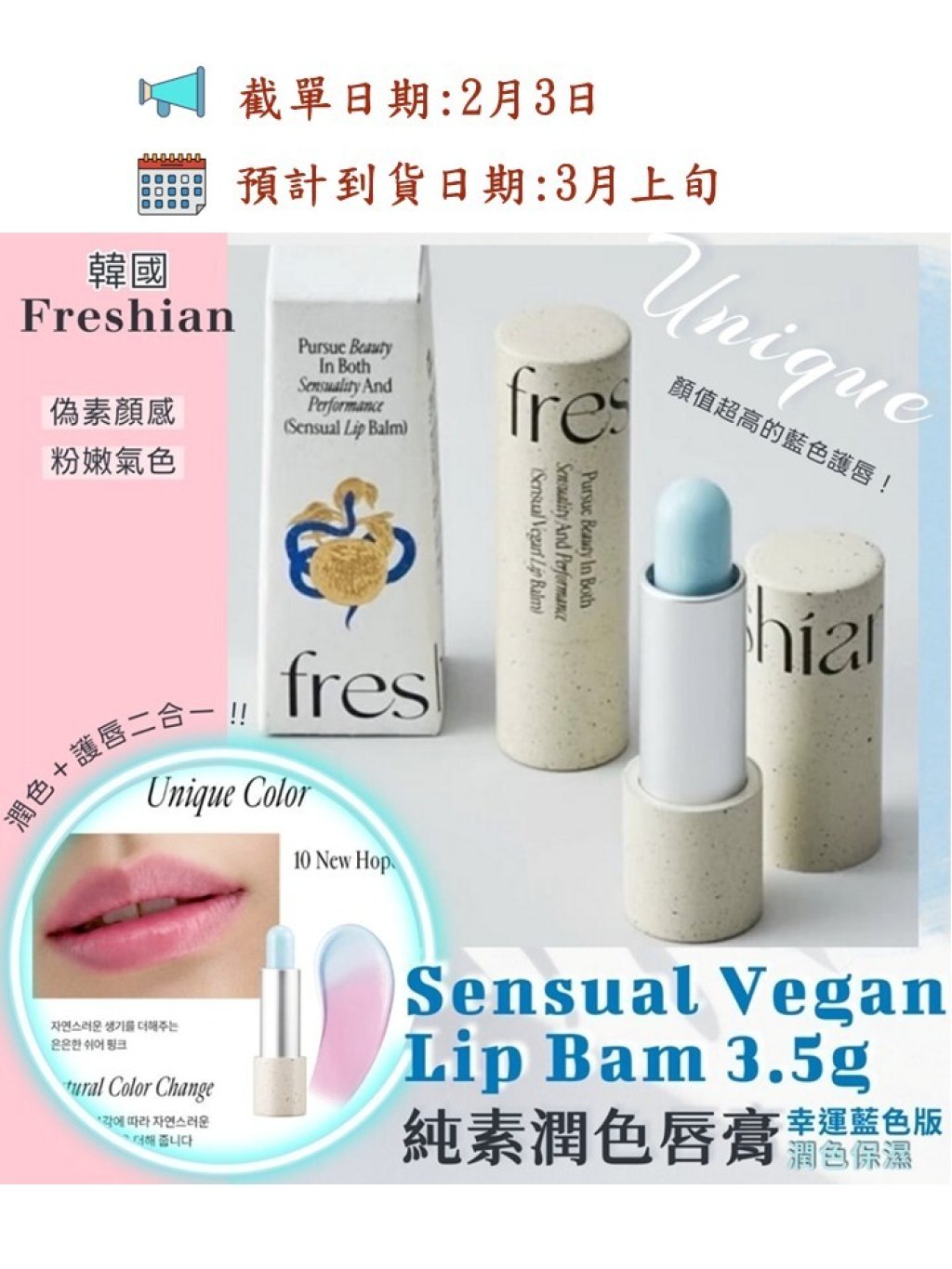 💎韓國Freshian 純素潤色唇膏3.5g-幸運藍色版