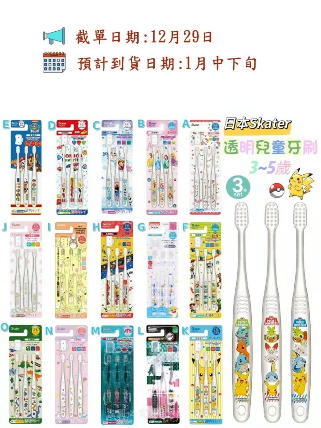 🎌日本Skater 透明兒童牙刷 (3-5歲) 附蓋 3枝裝🎌