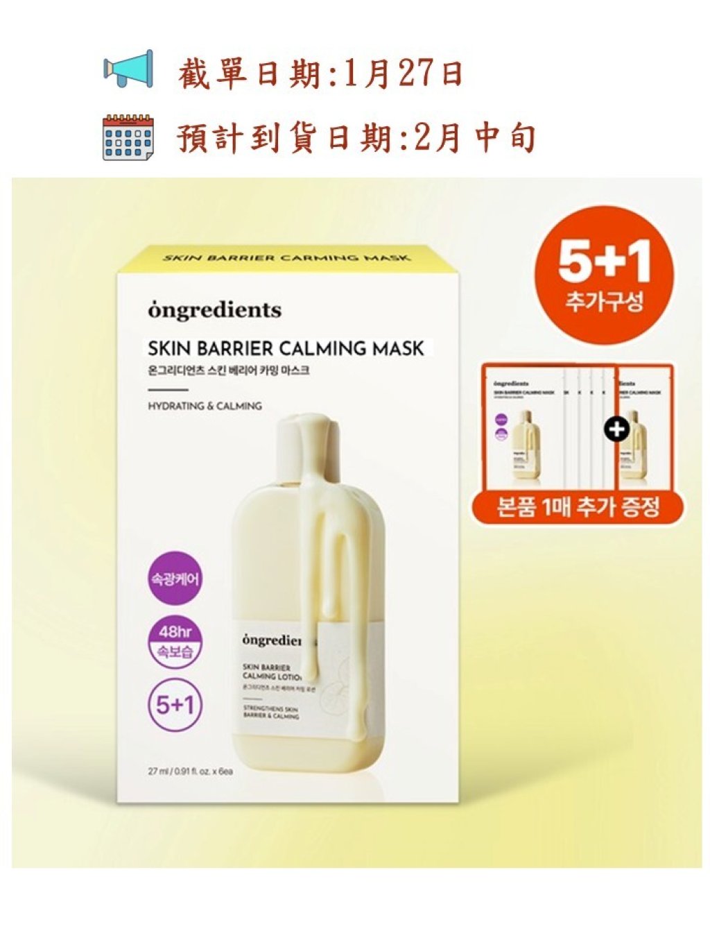 🌸Ongredients 肌膚屏障舒緩面膜 6片/盒