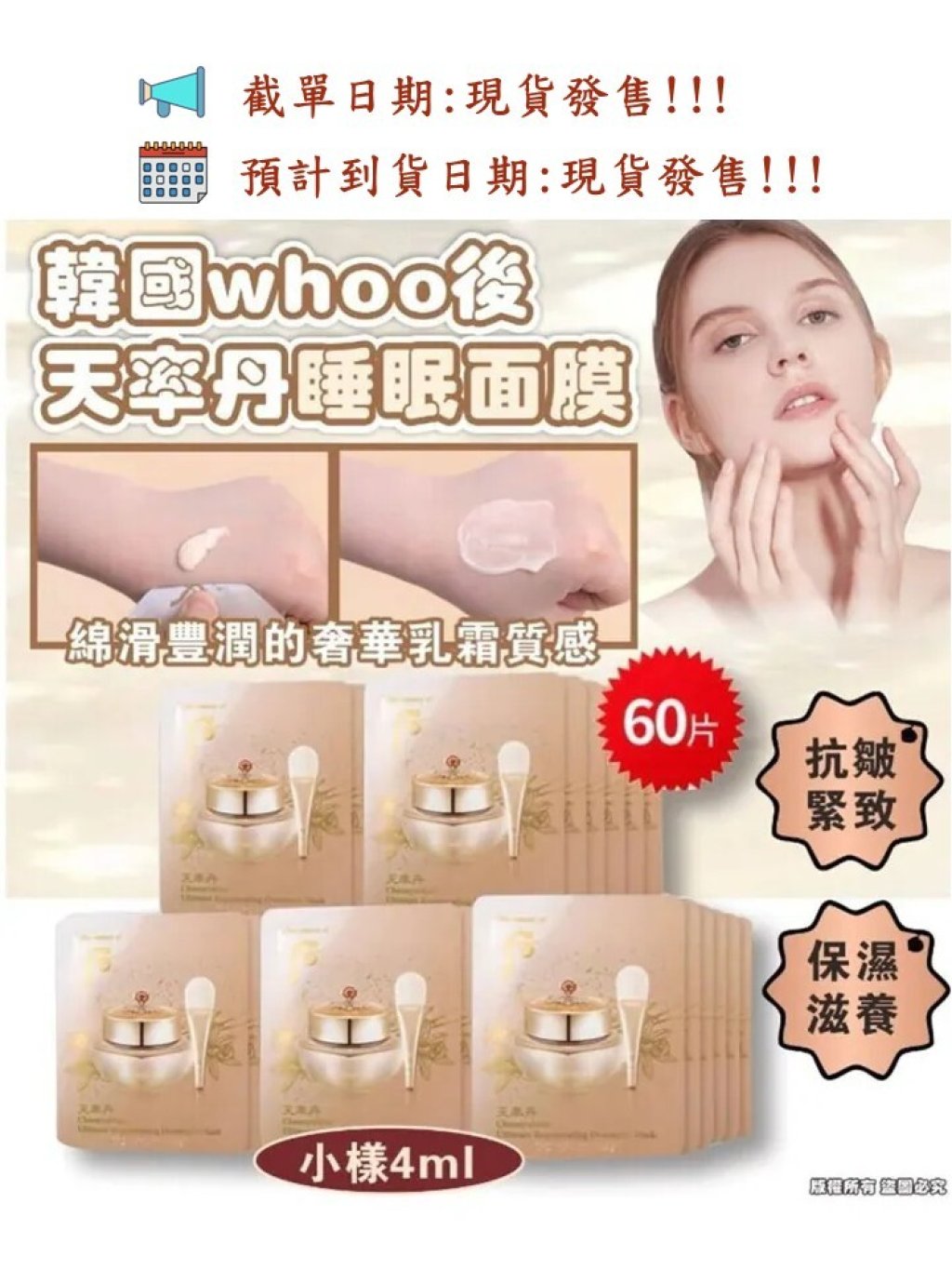 韓國🇰🇷Whoo后 天率丹極致再生睡眠面膜4ml (1套60小片)