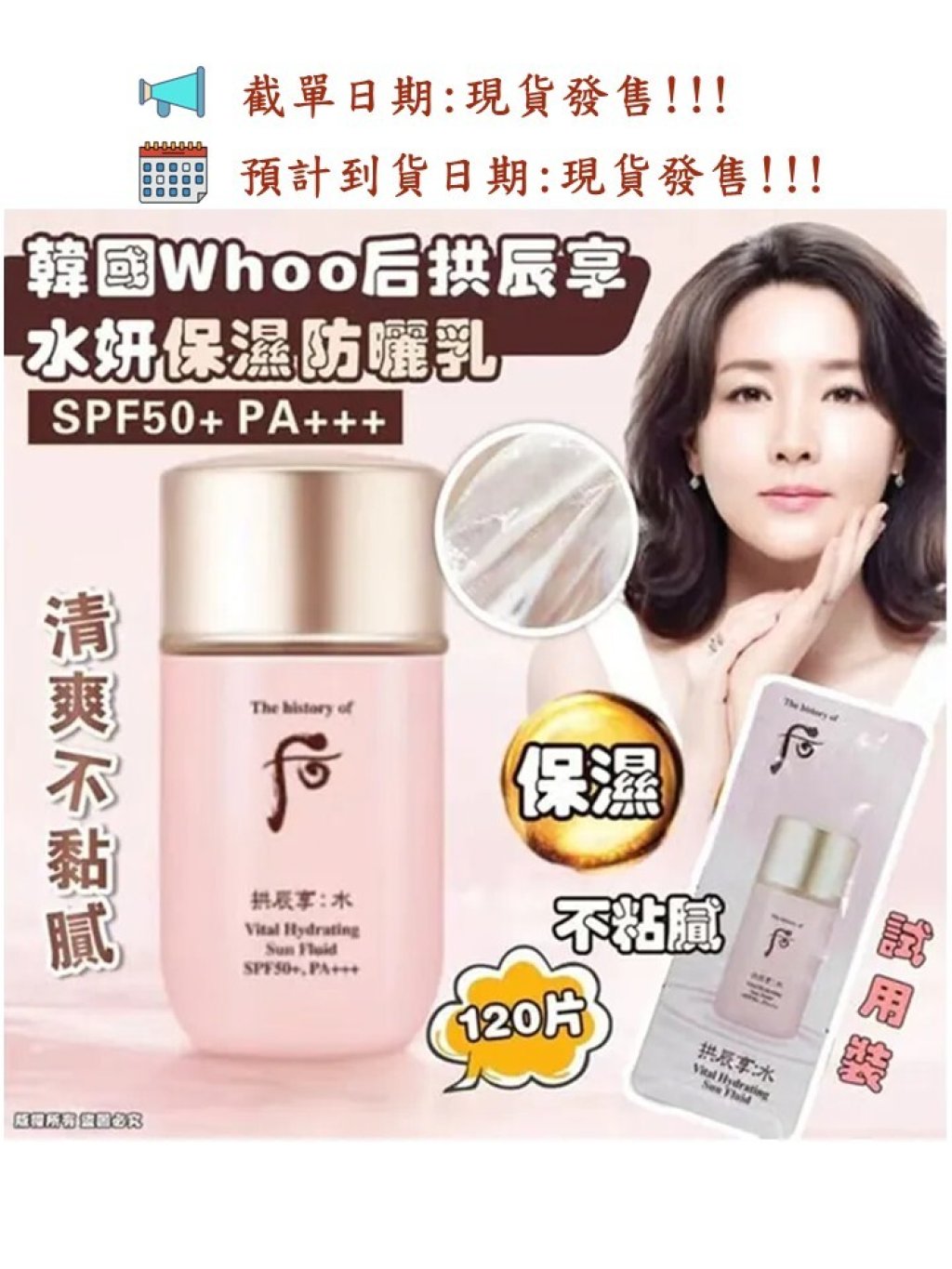 韓國製造 Whoo 后拱辰享水妍保濕防曬乳試用裝 (1袋120片)