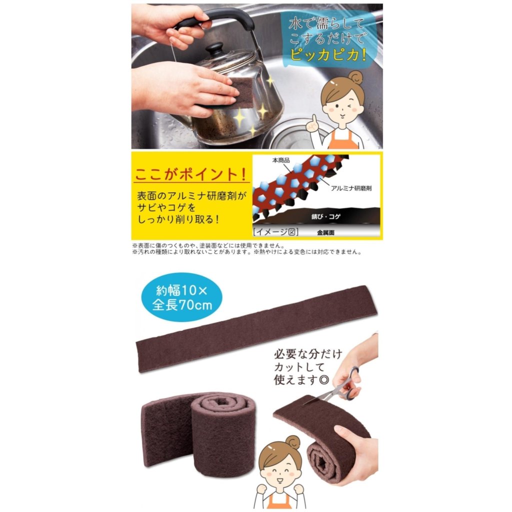 🔹本產品表面上含有氧化鋁磨料,能徹底去除鏽跡、燒焦的食物殘喳和污垢。