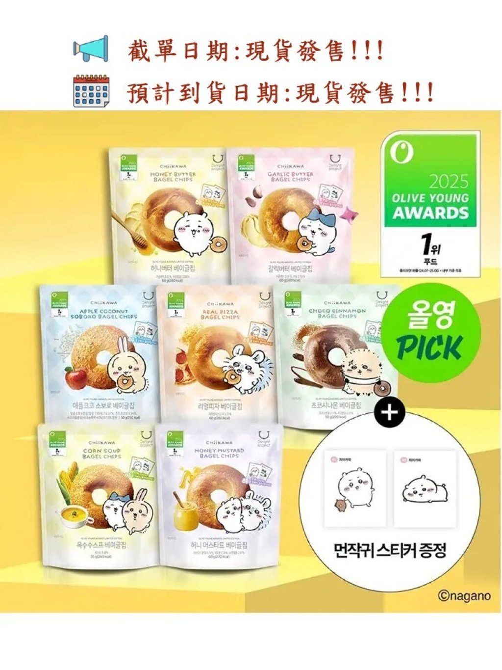 Chiikawa × Olive Young 排行第一位🥇🎉 限定版貝果脆片 7 款口味 +
