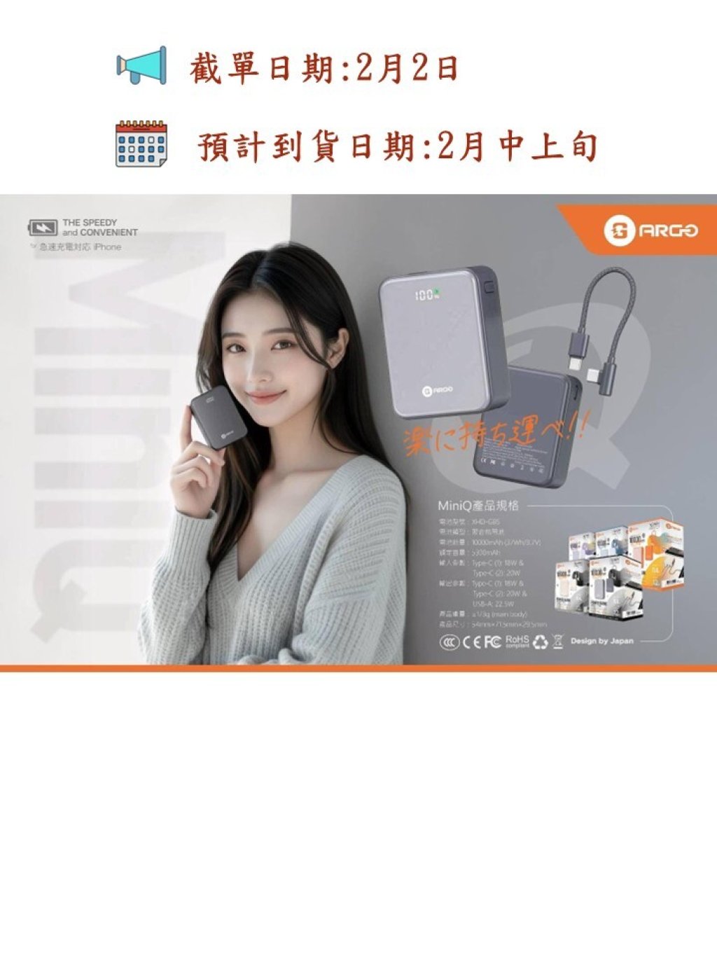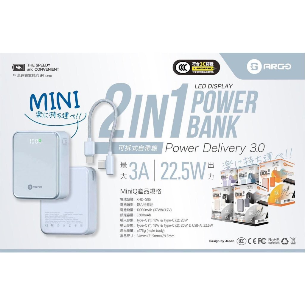Argo MiniQ 10000mAh 超迷你快充神器 Qr code 板本