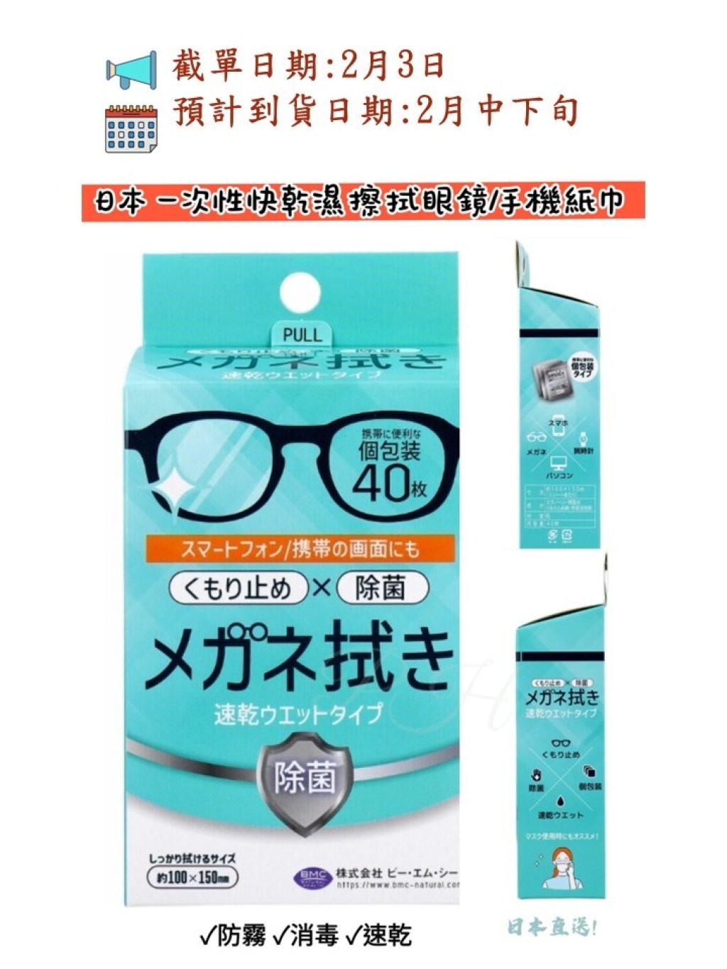 🟡日本 一次性濕擦拭快乾眼鏡/手機紙(40片)🟡