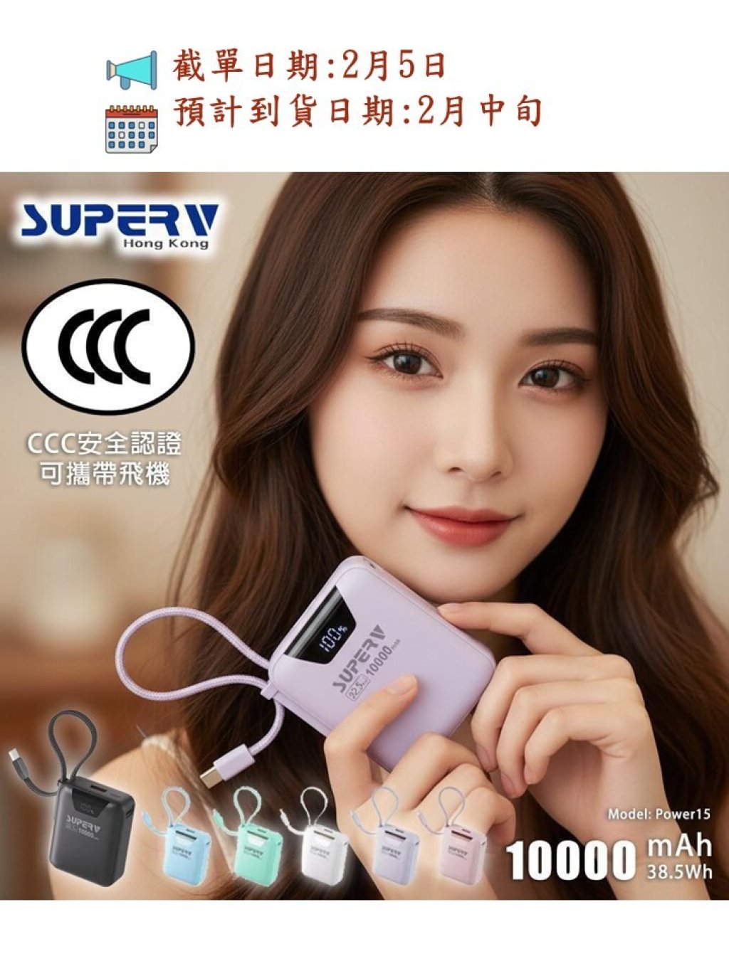 Superv 🇭🇰 Power15 CCC認證10000mAh內置線便攜行動電源
