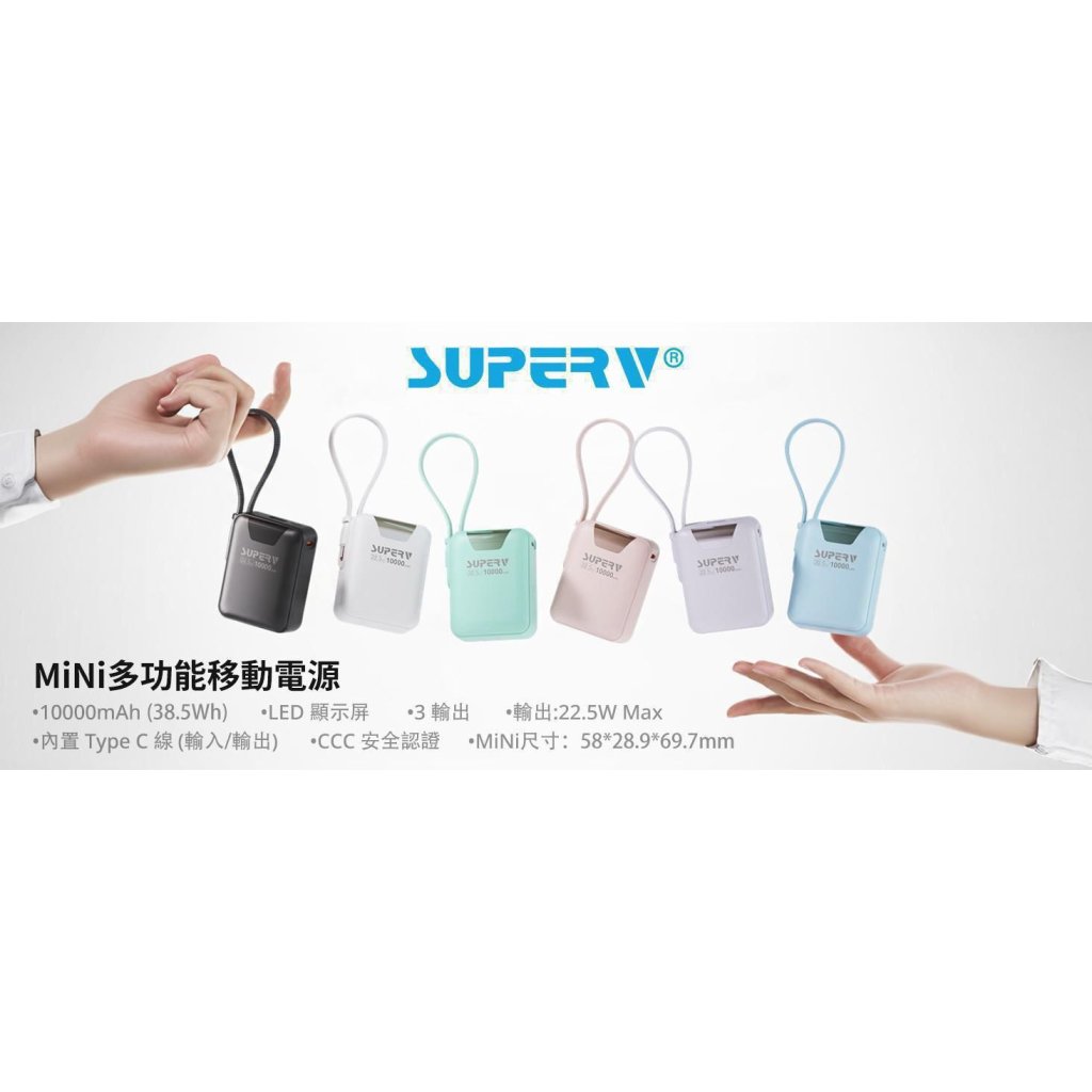 Superv Power15 CCC認證10000mAh內置線便攜行動電源
