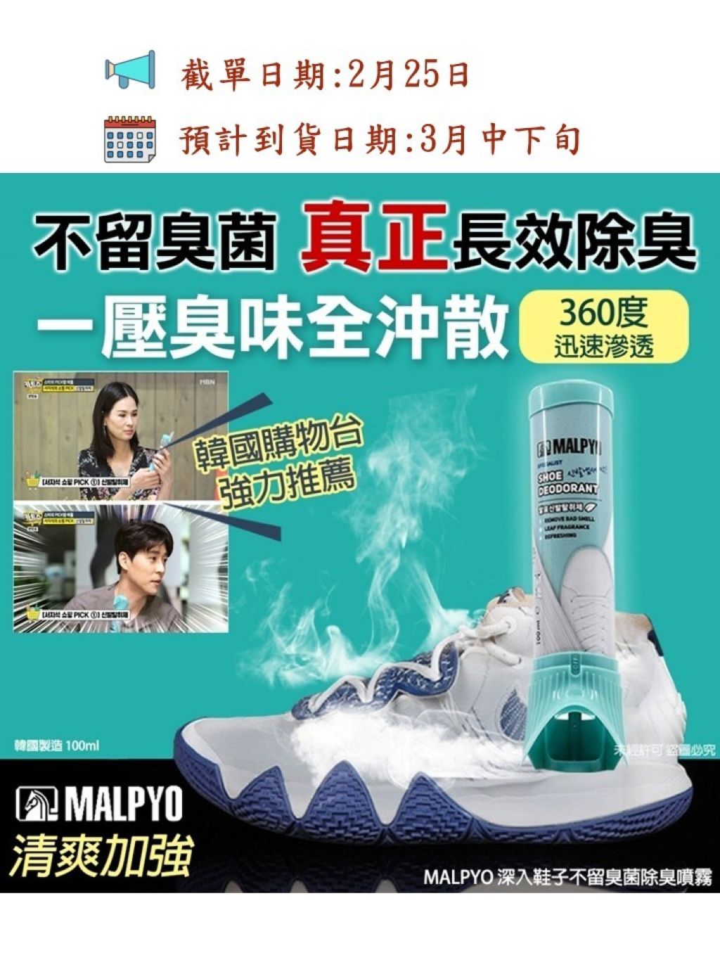 MALPYO 深入鞋子不留臭菌除臭噴霧 100ml