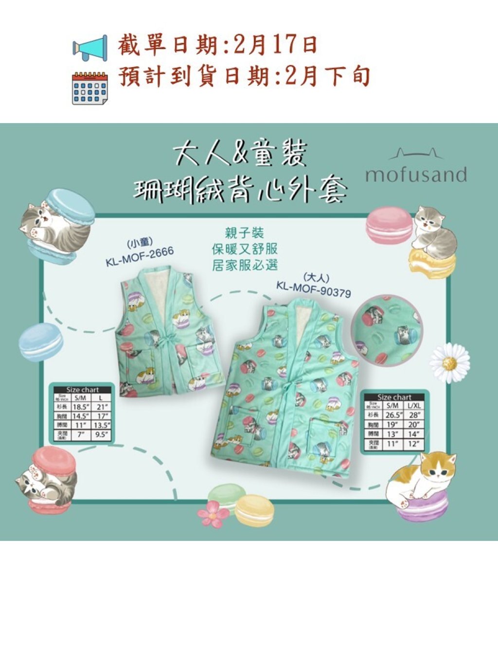 🟡可愛卡通珊瑚絨親子裝家居背心🟡