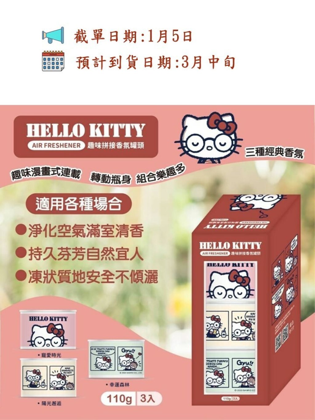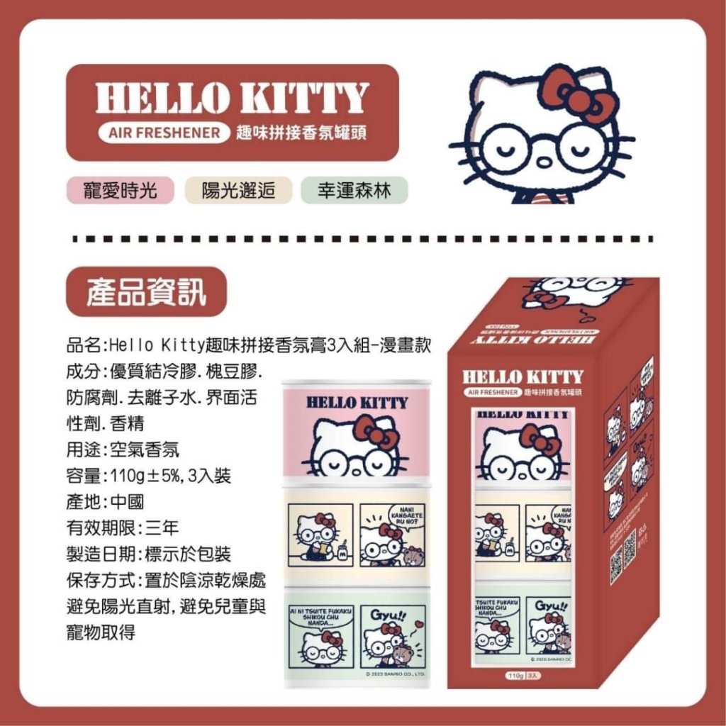 🟡台灣 Sanrio Hello Kitty 趣味拼接香氛罐110g/3入組🟡