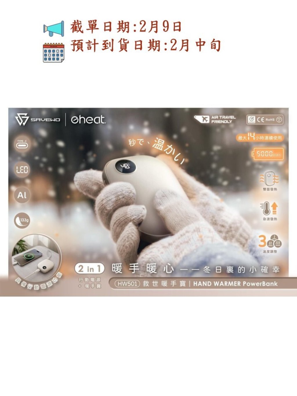 🟡SAVEWO eHeat 暖手寶HW501 是爲你帶來溫暖的必備小夥伴🟡