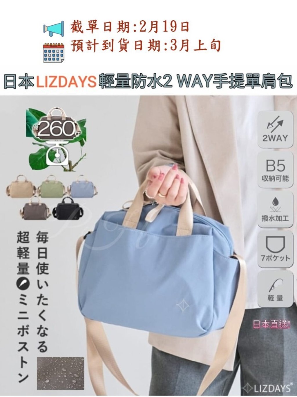 🟡日本 LIZDAYS輕量防水2 WAY手提單肩包🟡