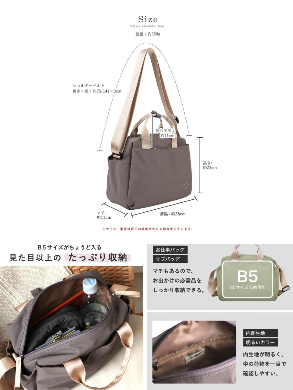 日本 LIZDAYS輕量防水2 WAY手提單肩包
