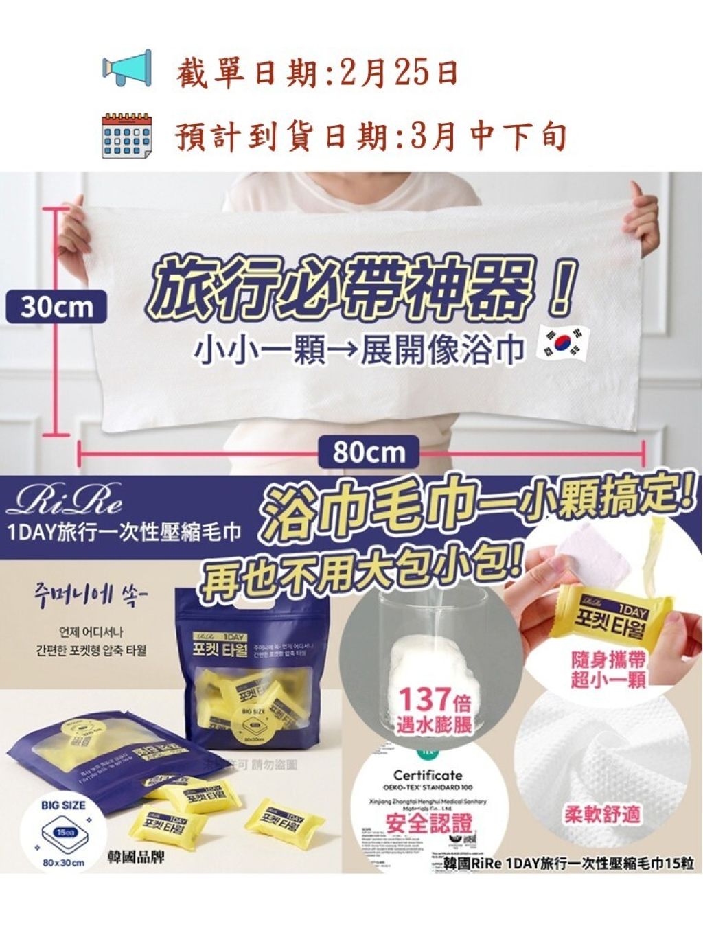 💖 韓國人氣旅行必備,輕便、衛生、環保一次滿足!一包有15條,一家大細去旅行都夠用!細細包唔佔位,但需要時就係救命神器🌟