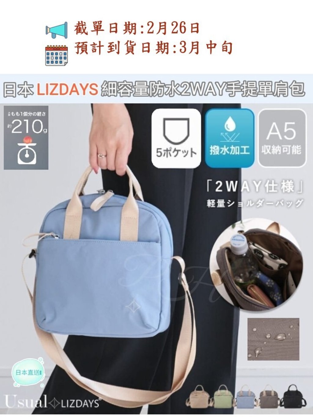 🟡日本 LIZDAYS細容量防水2 WAY手提單肩包🟡