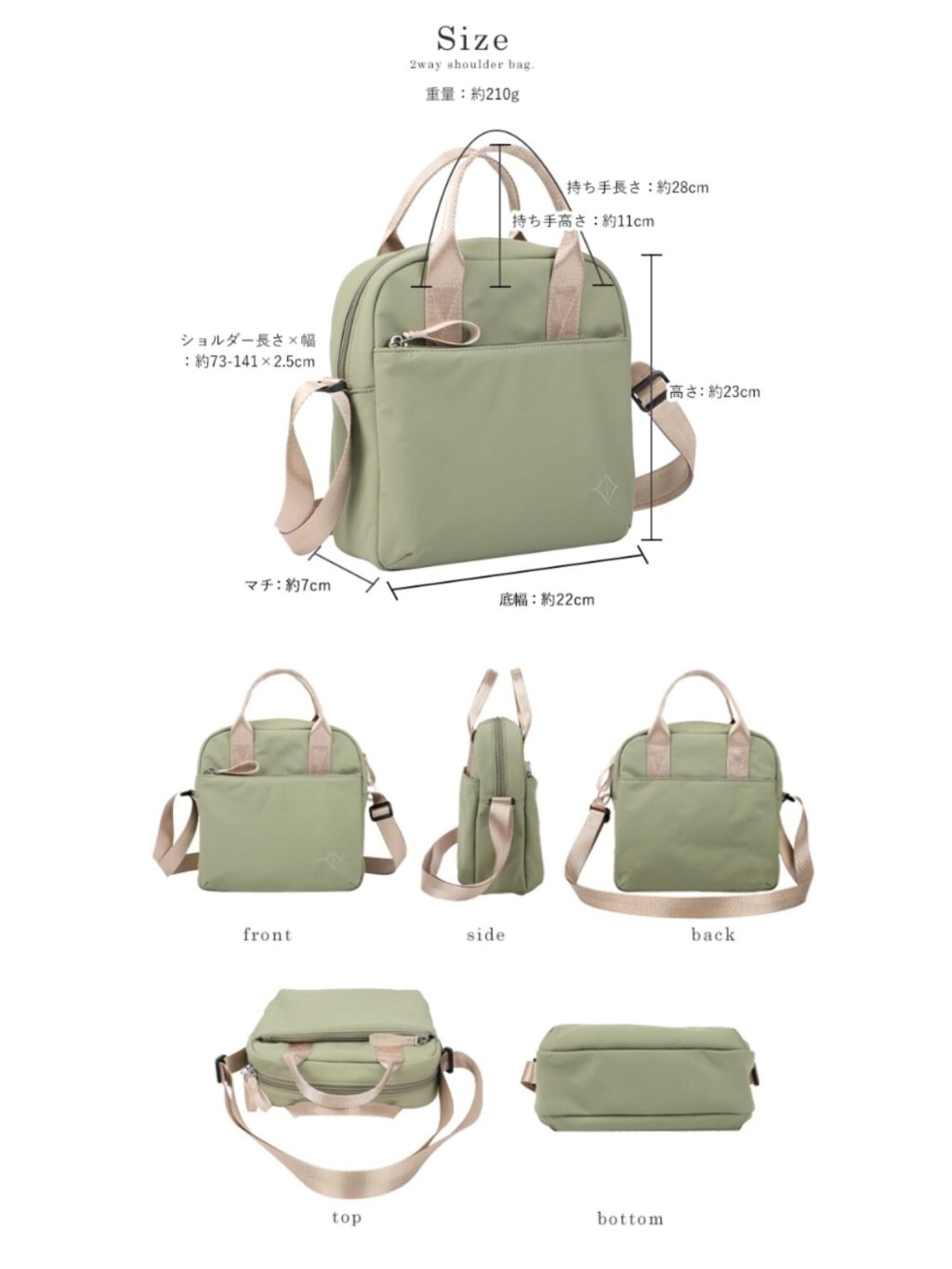 👜共有5個口袋!主袋可收納500ml水樽或A5尺寸,前後側袋可整齊收納小物品。