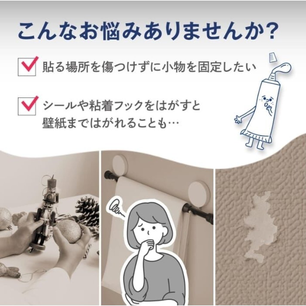 ✨即使牆上殘留黏合劑,也可以用手輕鬆去除。