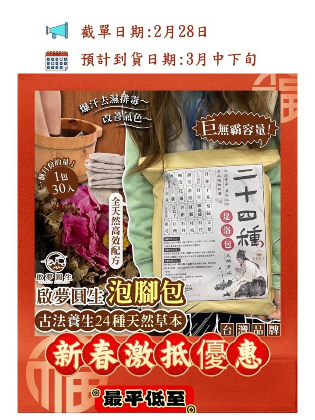 🟡台灣古法養生24種天然草本超大容量泡腳包 (1包30入)🟡