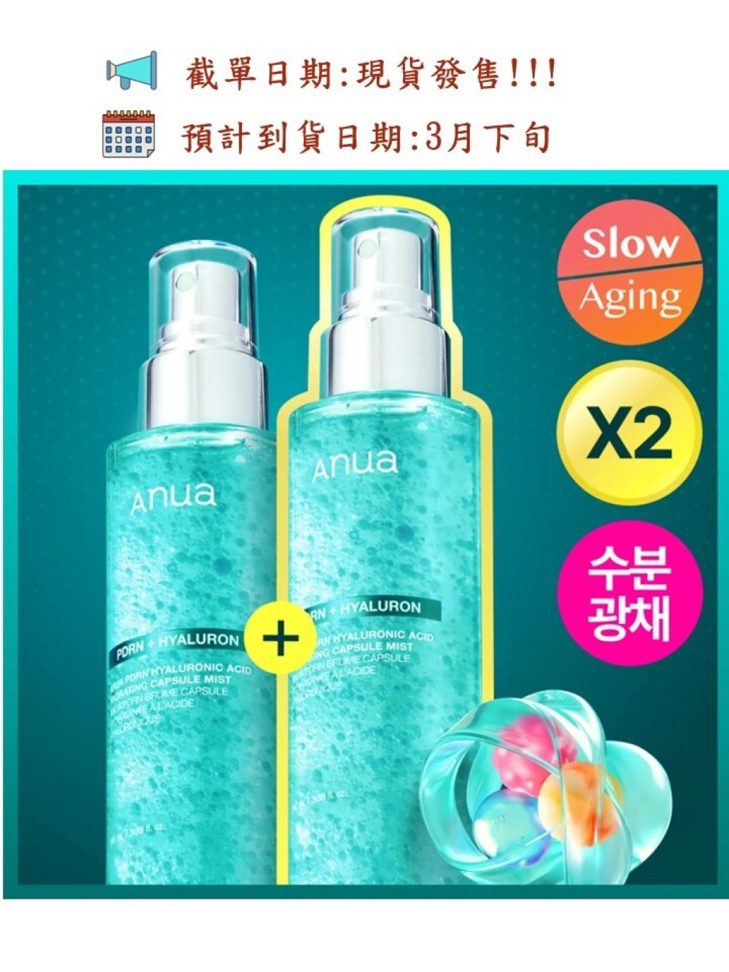 🌸Olive Young ANUA 💦 PDRN透明質酸水光膠囊噴霧套裝100ML X2支✨