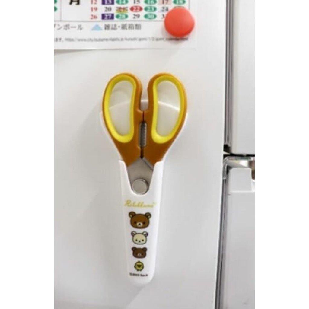 這款廚房剪刀以可愛的輕鬆熊圖案為主題🐻它配有一個收納盒,可存放保護刀刃✂️背面還帶有磁鐵,可以直接吸附在冰箱上。