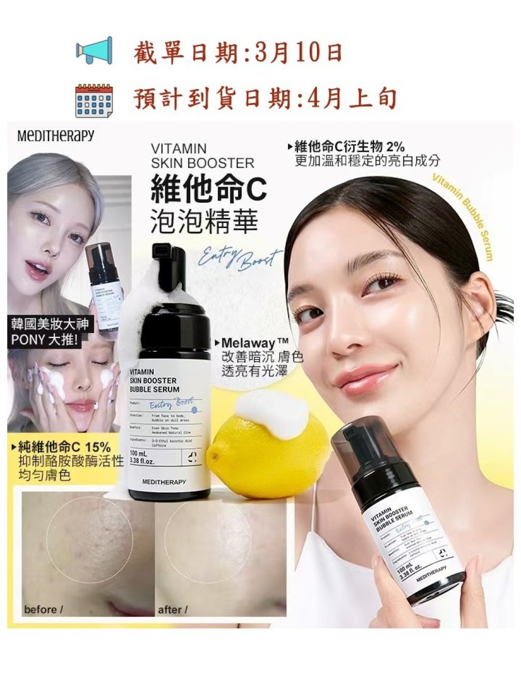 🍋 韓國 MEDITHERAPY 維他命C亮膚泡泡精華 🍋一用就懂,這瓶真的不一樣!