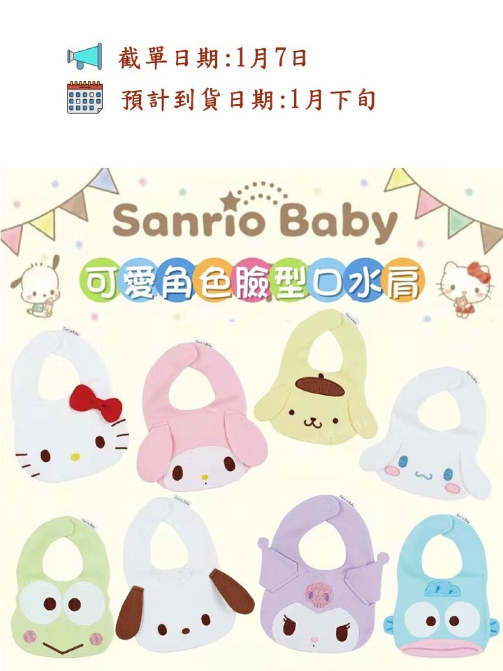 日本Sanrio Baby 最新出品,好可愛呀🤩! 可愛角色臉型做成口水肩💕
