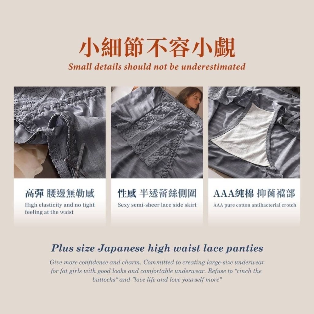 即刻行動,愛自己從穿著開始! 拒絕不舒適的內褲,選擇這款加大碼高腰蕾絲內褲,讓每個細節都呵護你的身體。