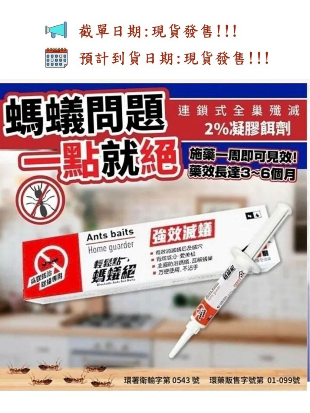 螞蟻絕凝膠餌劑,愛美松成分製作,只要米粒大小,終絕蟻家,輕鬆點螞蟻絕,有效消滅蟻后同蟻穴,方便使用唔沾手