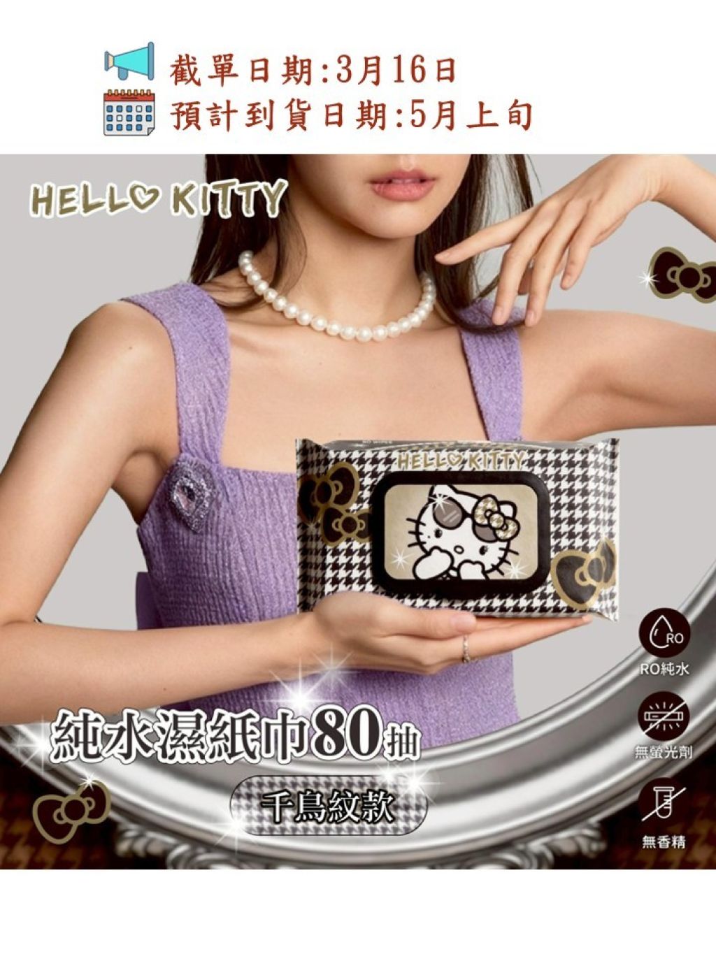 🟡台灣 Hello Kitty千烏紋純水濕紙巾80抽 (一組2包)🟡