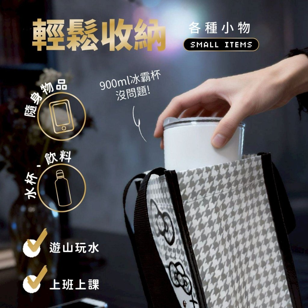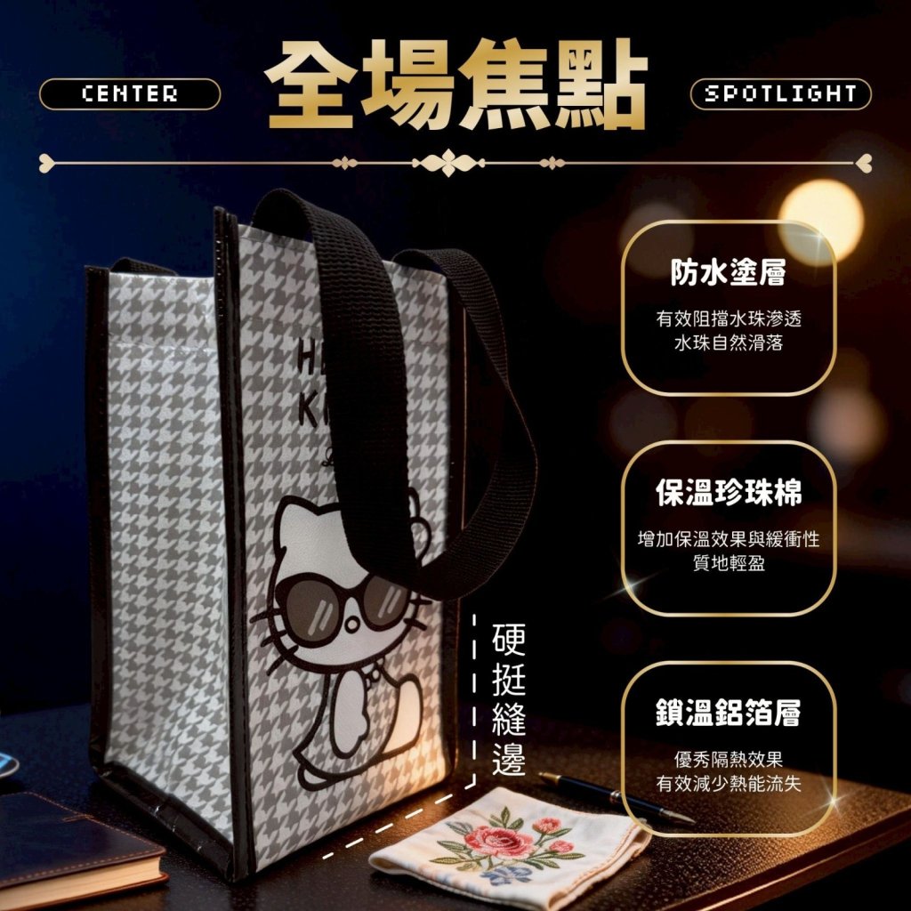 ※凱蒂貓千鳥紋保溫、保冷飲料提袋,雙面不同圖案,怎麼提都好看
