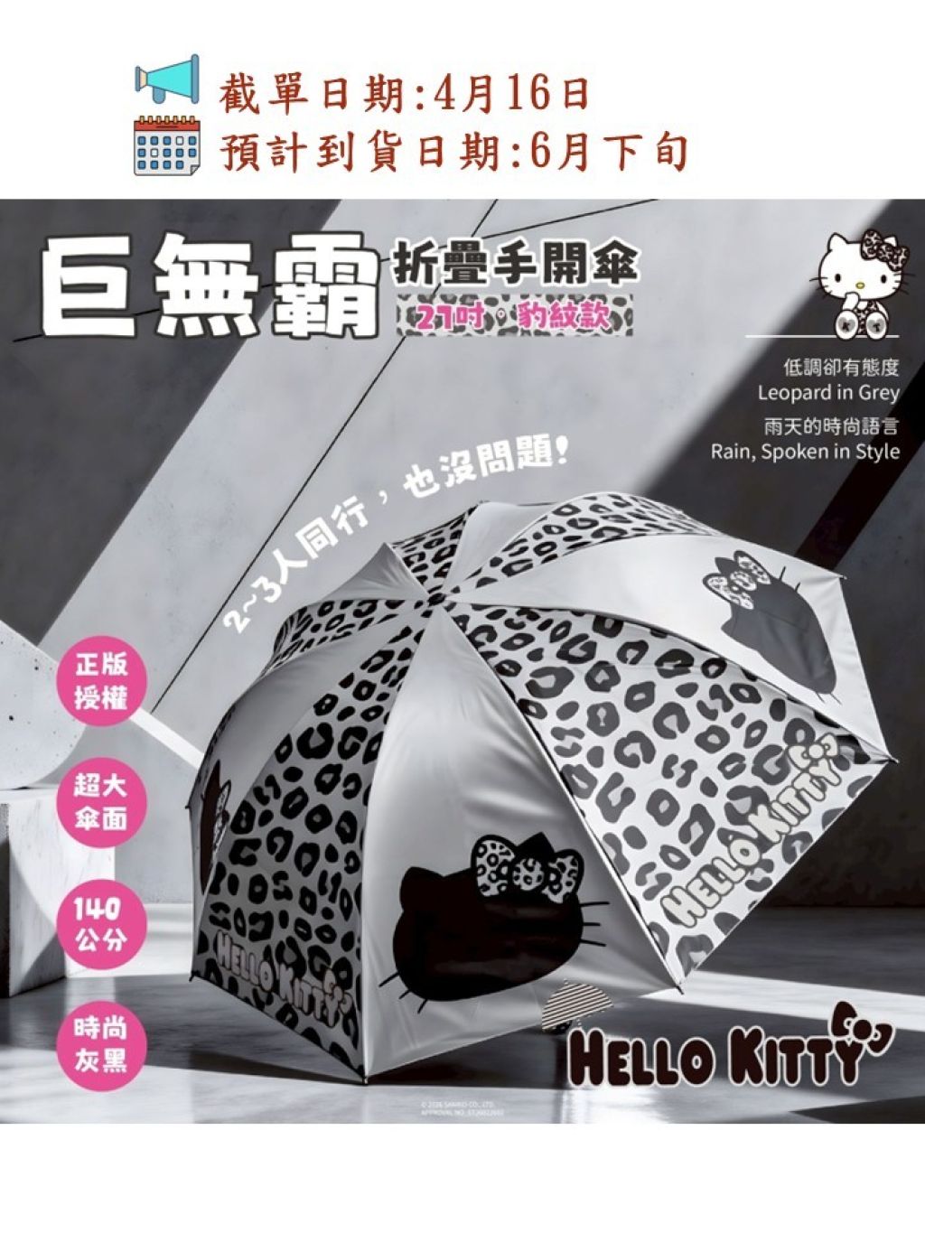 🟡台灣 Hello Kitty 27吋巨無霸折疊手開傘 (豹紋款)🟡