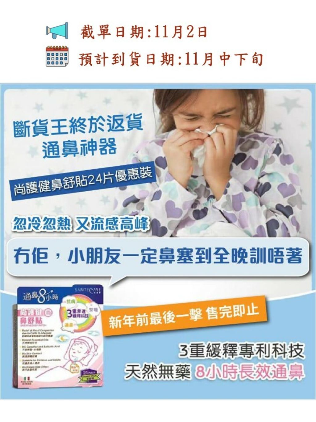 鼻舒貼一貼「10秒紓緩」鼻敏困擾之餘仲成晚瞓得好舒暢,而家仲有超抵價😱 快啲嚟搶貨啦💥