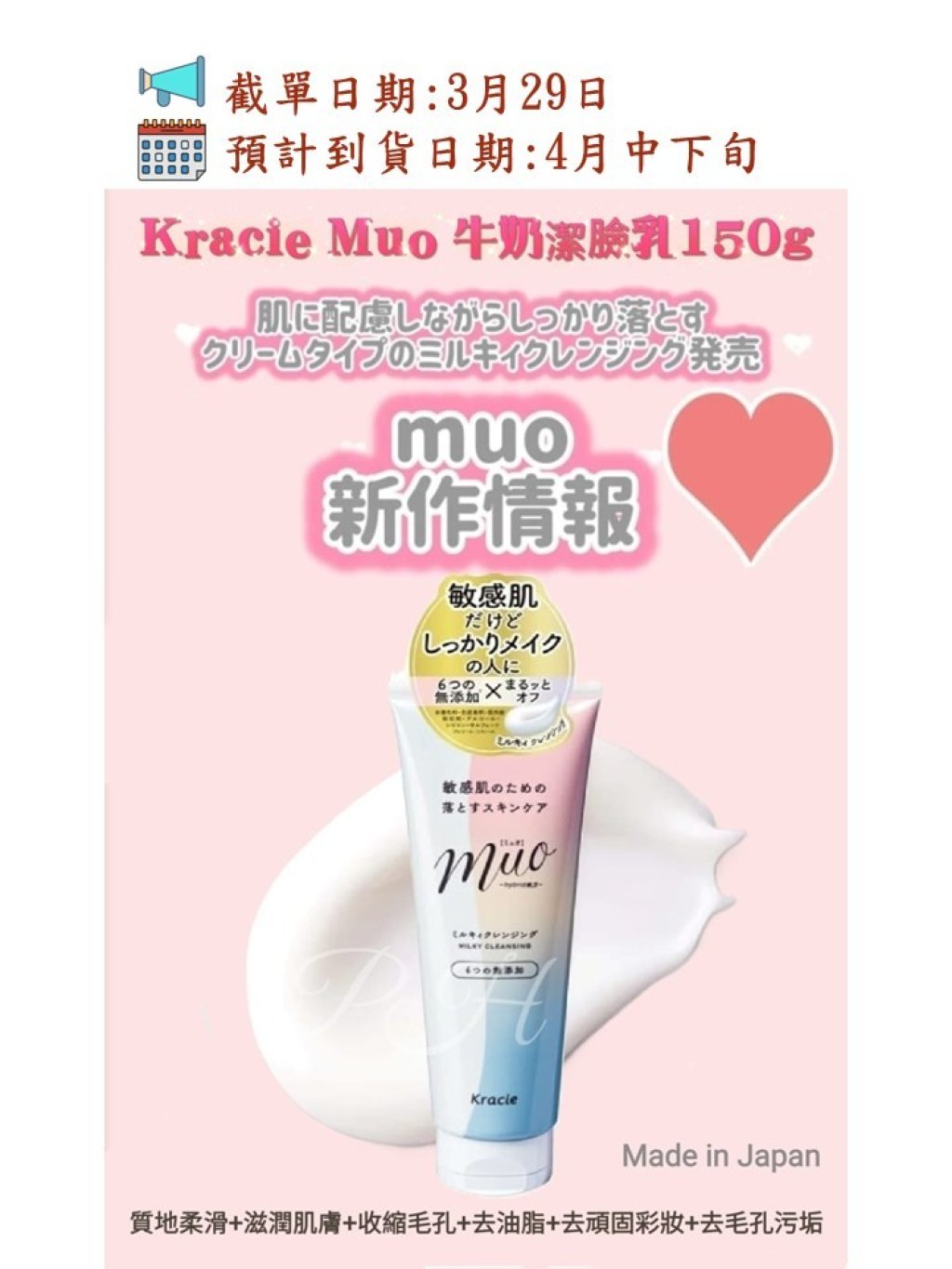 🟡日本製 Kracie Muo牛奶潔臉乳150g🟡