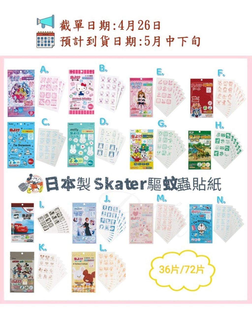 🟡日本製 Skater天然精油驅蚊貼紙(36片/72片)🟡
