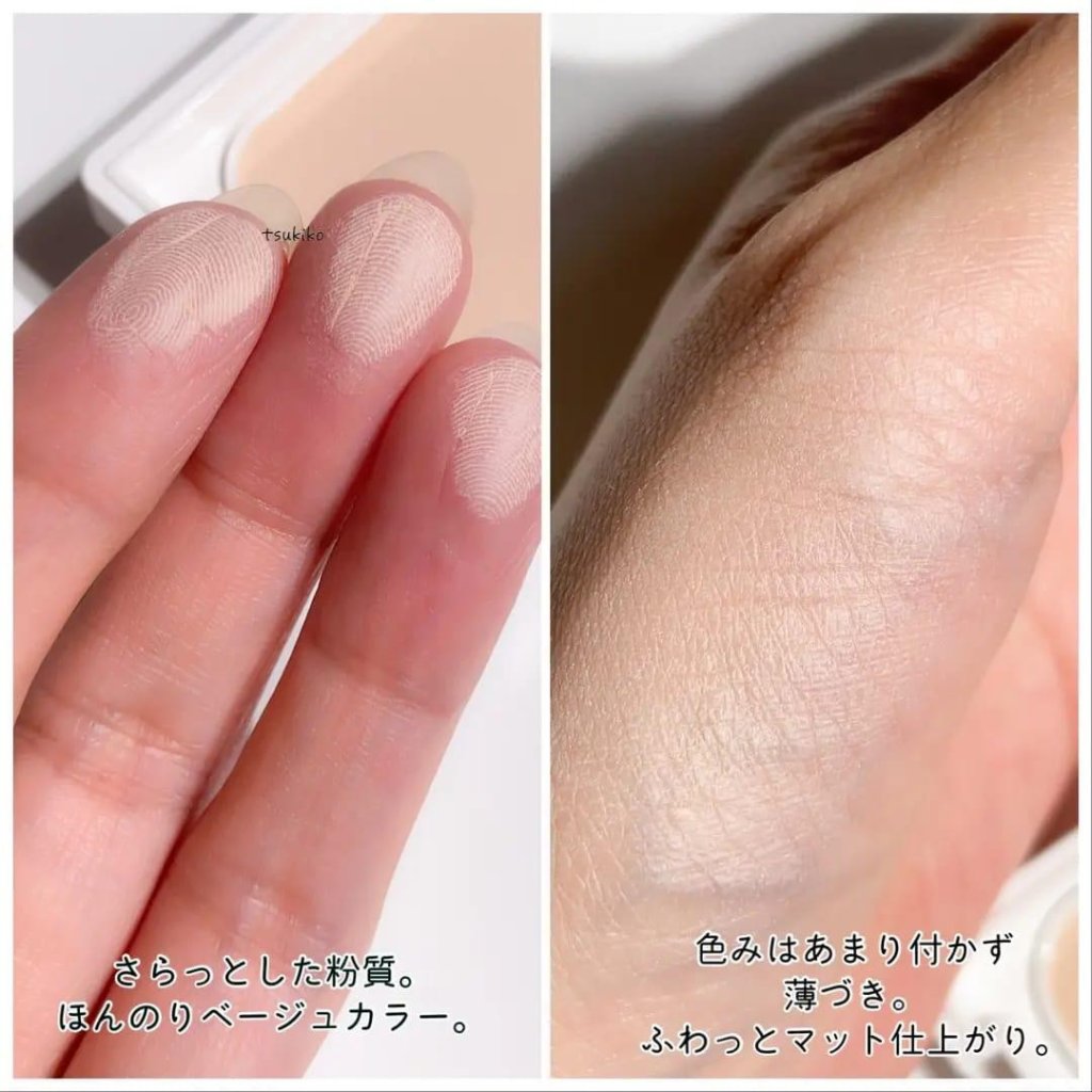 ✅自帶的粉撲抓粉力很好,粉質細膩妝感不強是自然透明感,色澤也不會過黃能提亮膚色,建議用來做定妝、補妝喔!