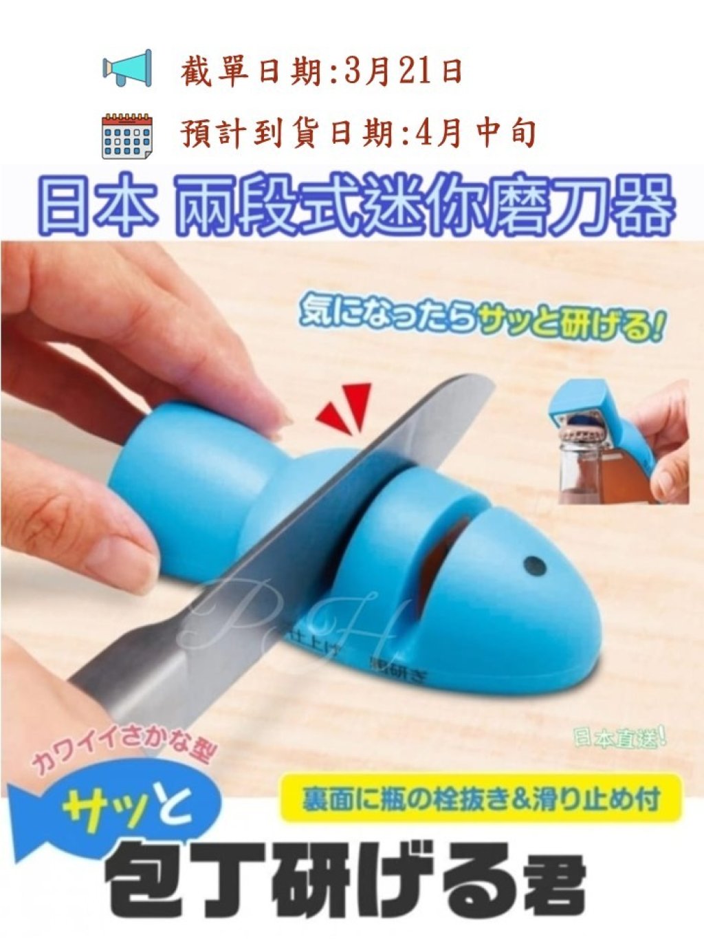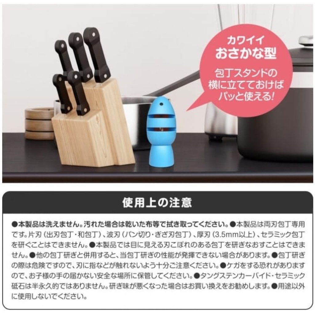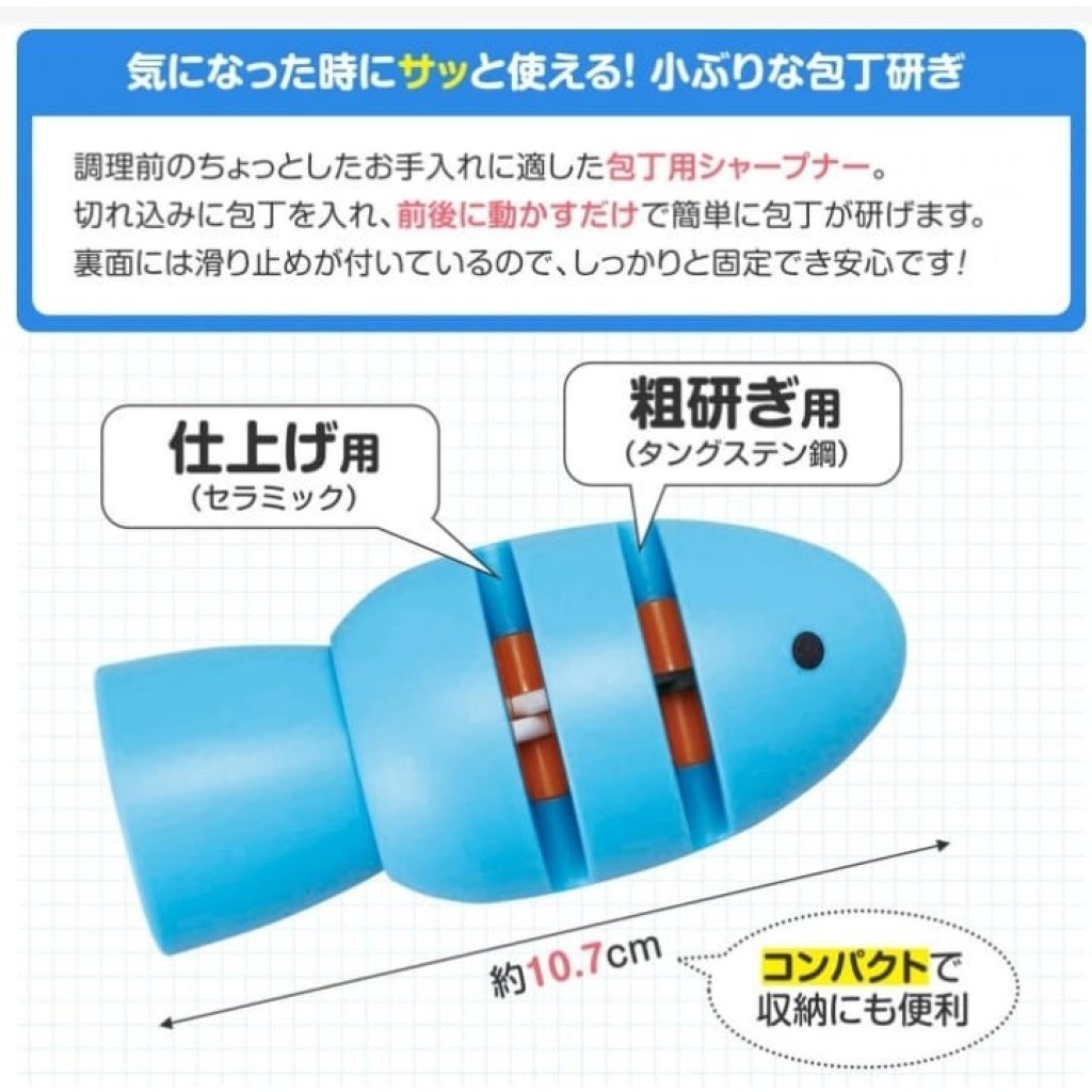 可愛的小魚造型,具備粗磨(鎢鋼)和精磨(陶瓷)兩段式設計,告別傳統刀手分離,磨刀不易傷手👍適合烹飪前速磨刀具,方便快捷👏