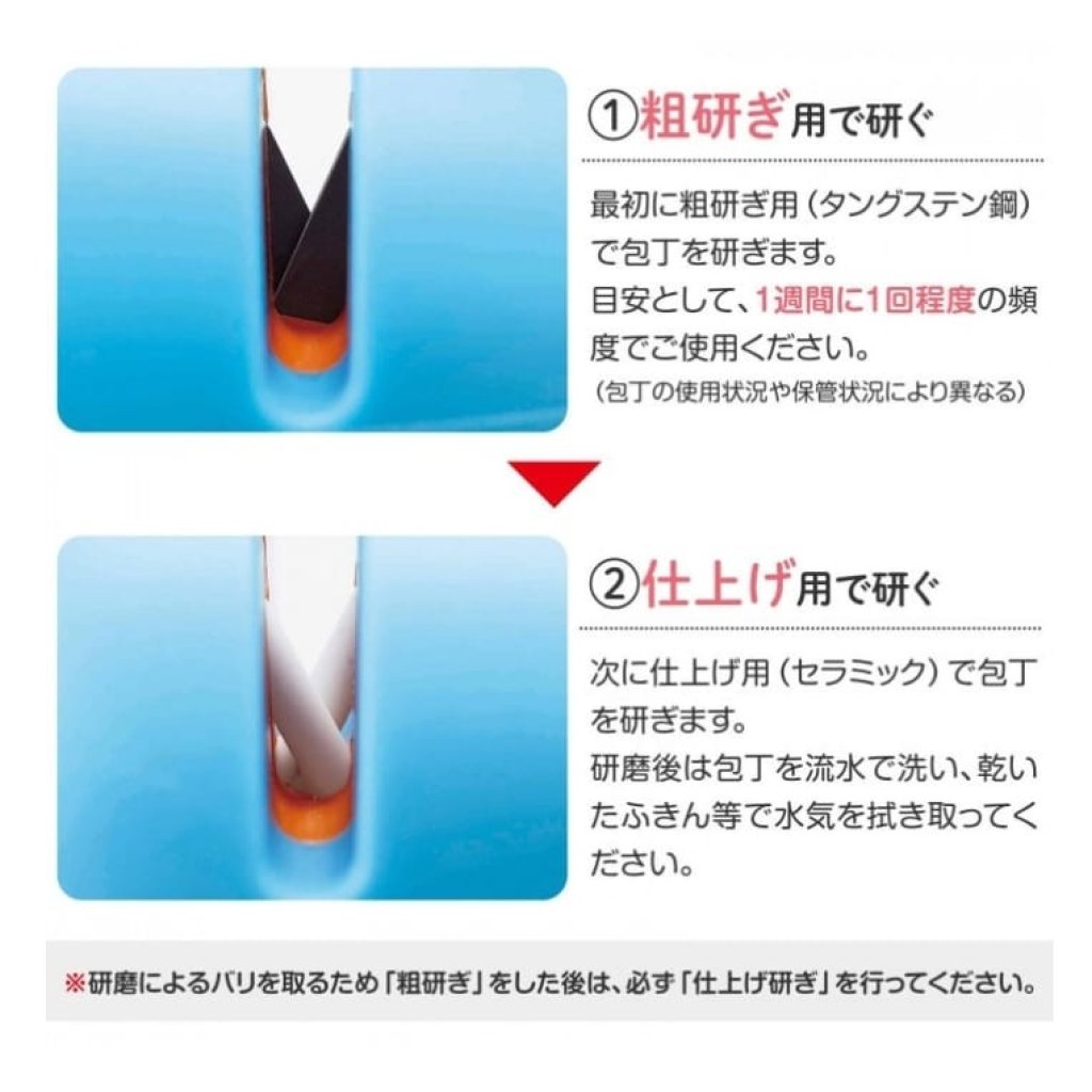 - 然後,用精磨(陶瓷)磨刀器磨刀刃。