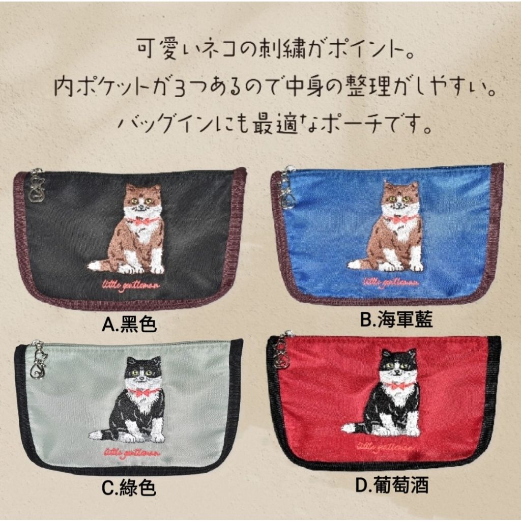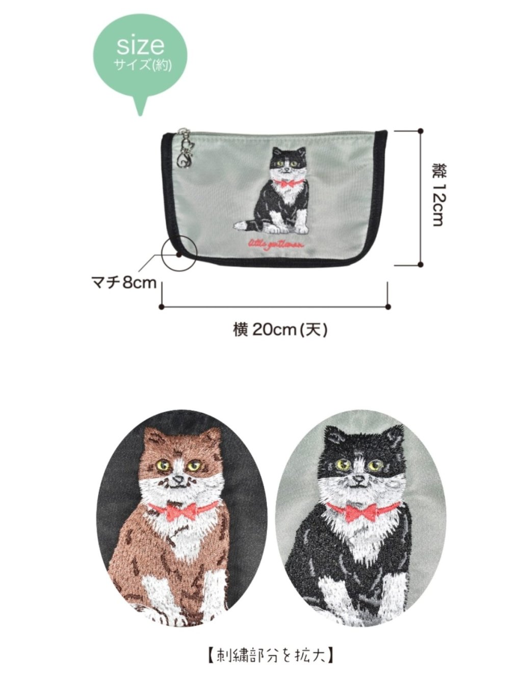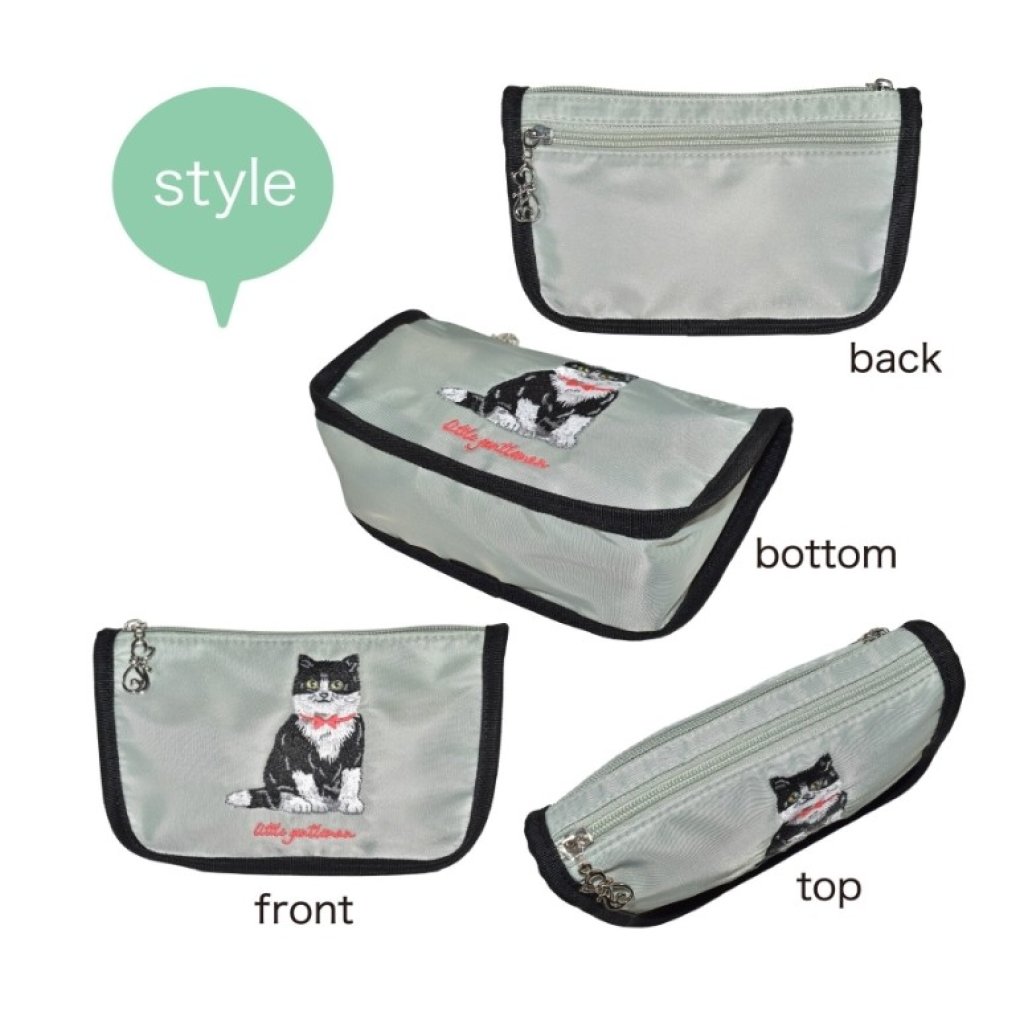 精緻可愛的Iittle gentleman貓咪刺繡圖案,2個貓型拉鏈頭作點綴🐈非常適合愛貓人士😍3個內袋可整齊分類化妝品和小物件🫶
