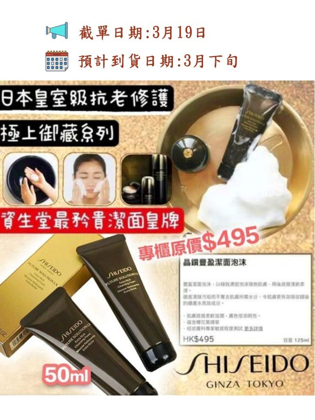 🌸日本SHISEIDO資生堂時光琉璃洗面奶(50ml)💕