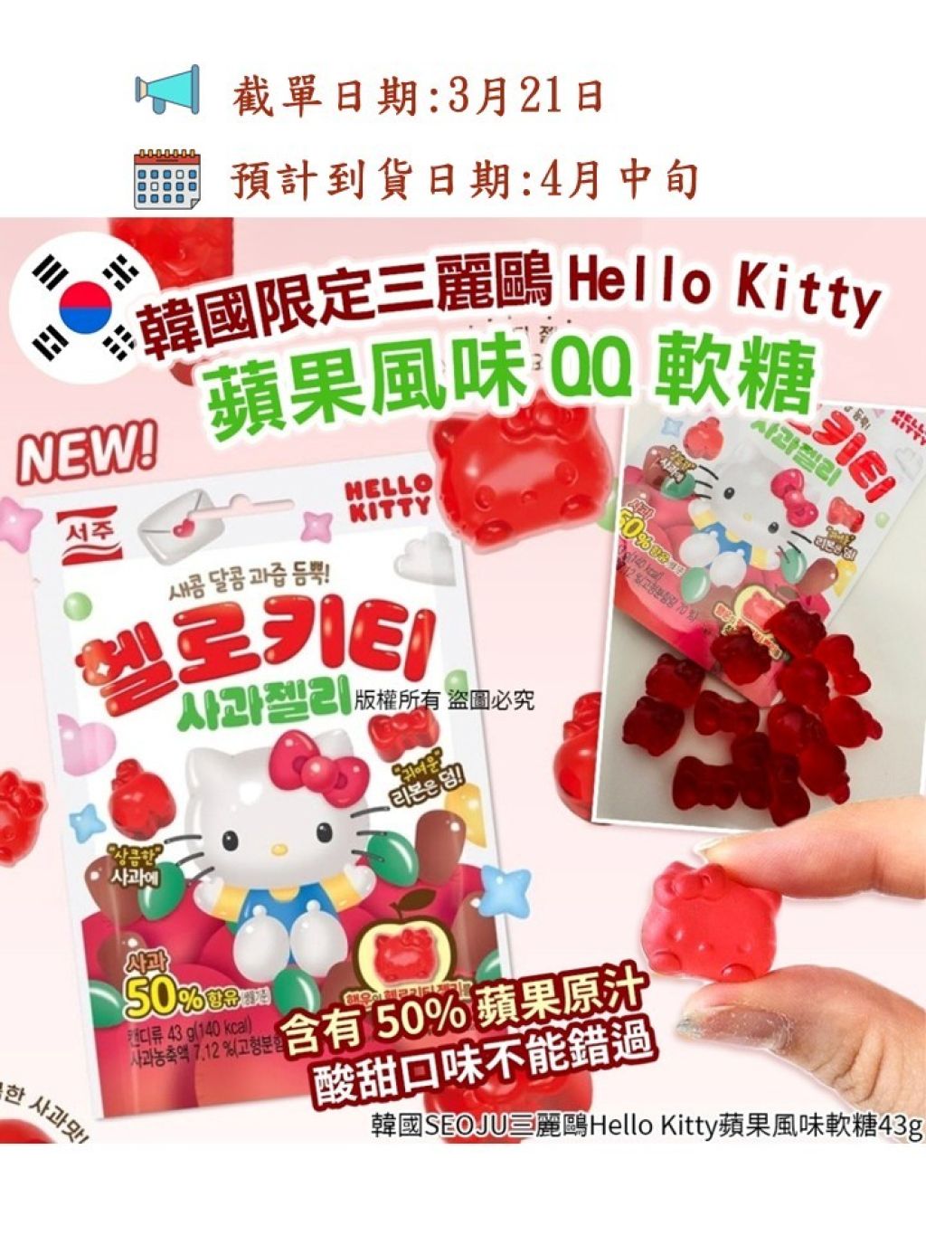 🌸韓國三麗鷗Hello Kitty蘋果風味軟糖43g(5包/套)