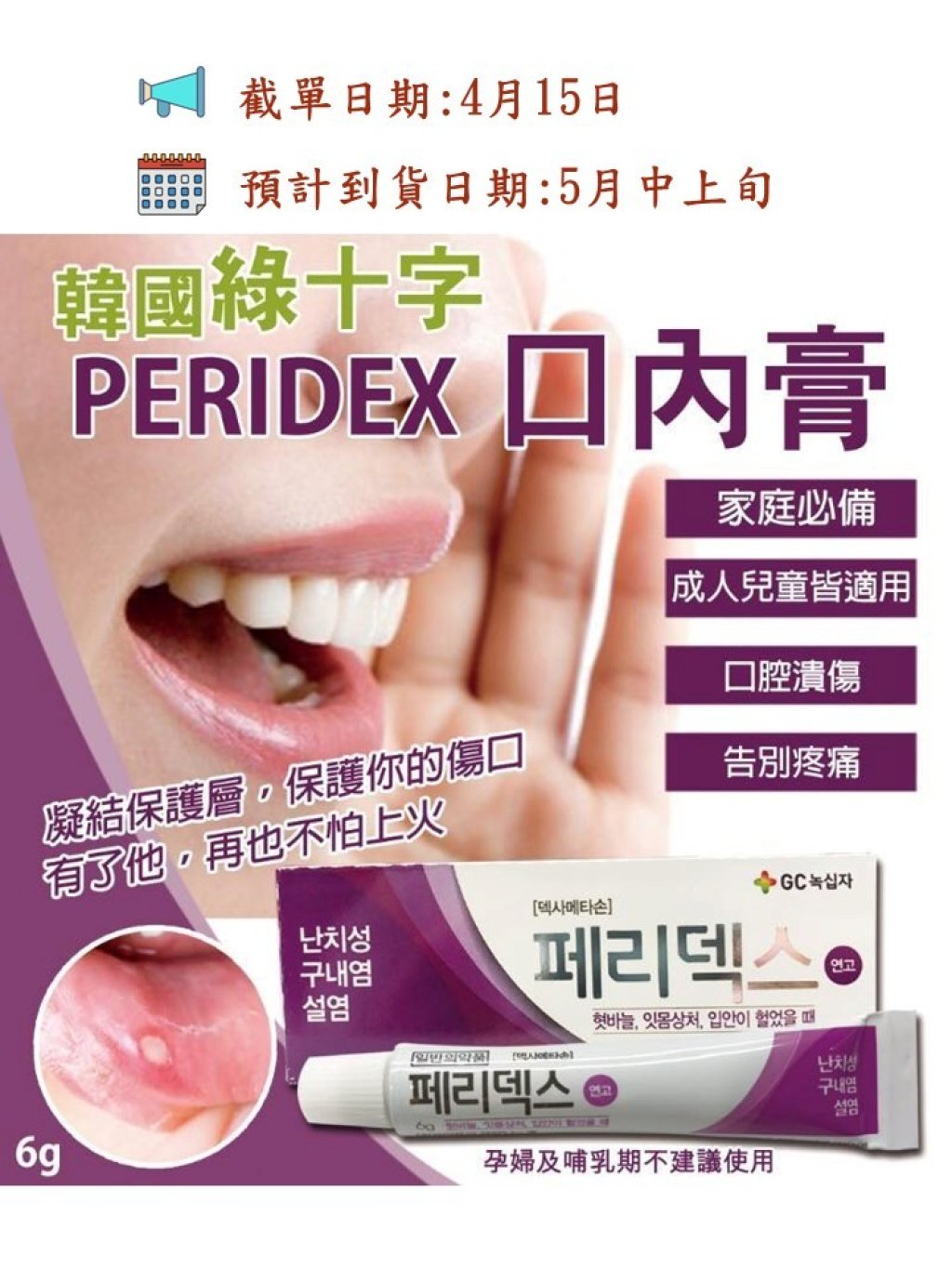 🔥韓國🇰🇷綠十字 PERIDEX 口腔潰瘍膏6g (飛滋膏)🔥