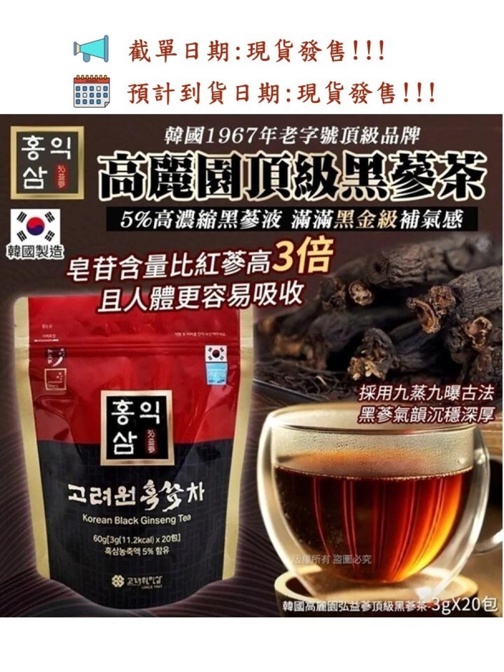 韓國高麗園弘益蔘頂級黑蔘茶-3gX20包