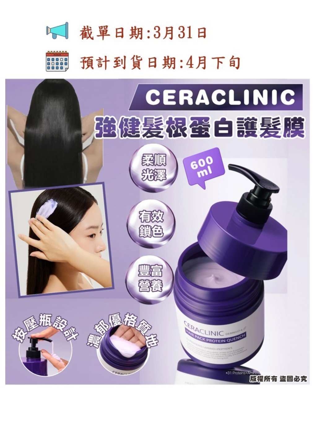 🍑【CERACLINIC 蛋白修護髮膜|豐盈鎖水版】