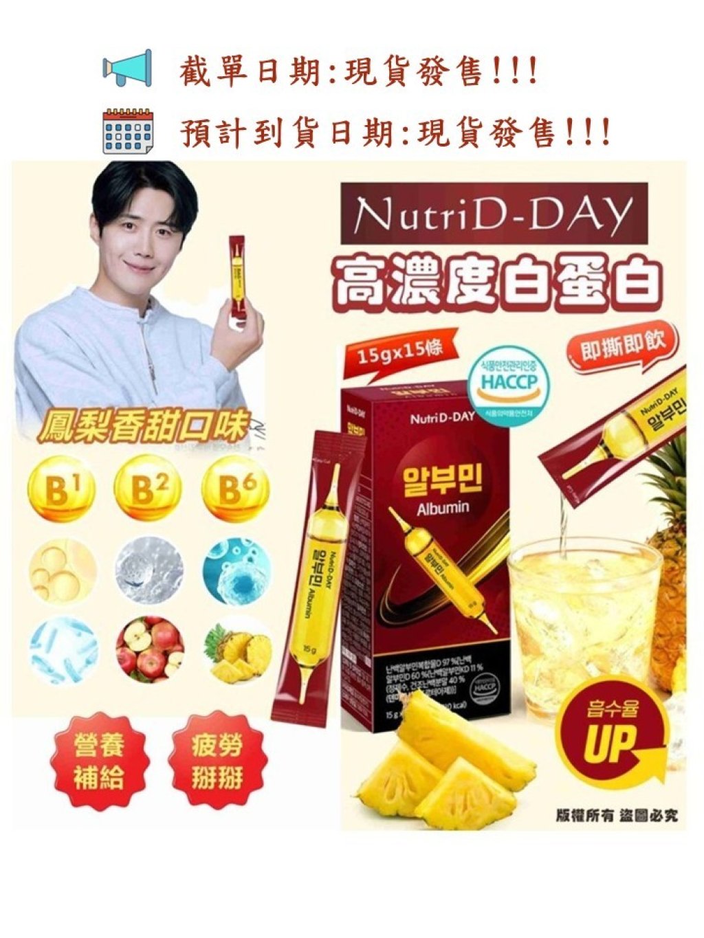 韓國🇰🇷NutriD-DAY高濃度白蛋白15g*15條