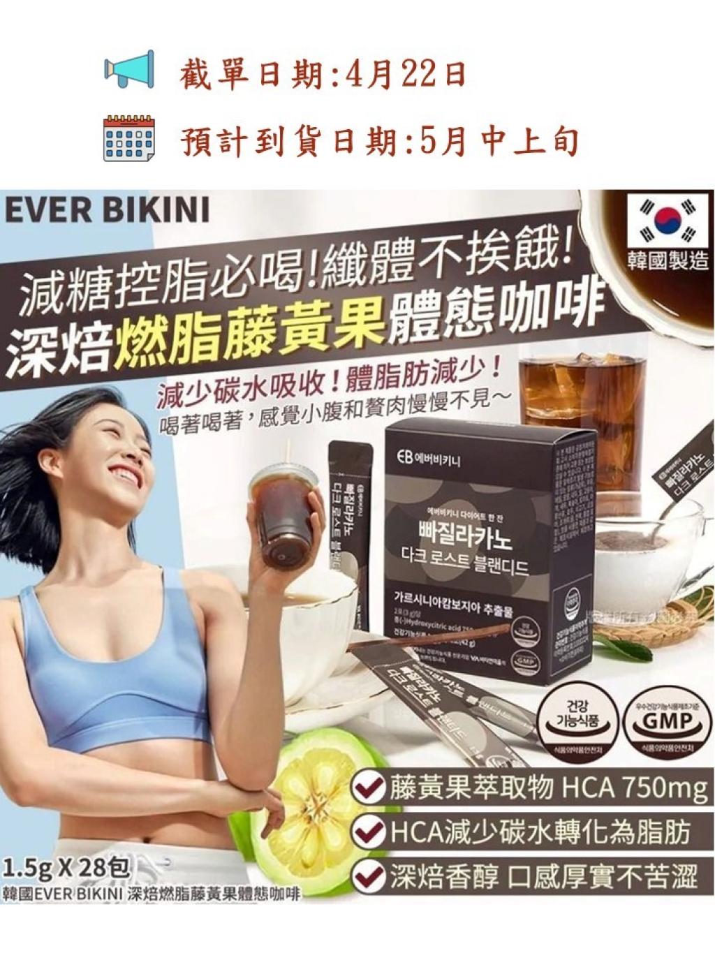韓國 EVER BIKINI 深焙燃脂藤黃果體態咖啡 (1盒28包)