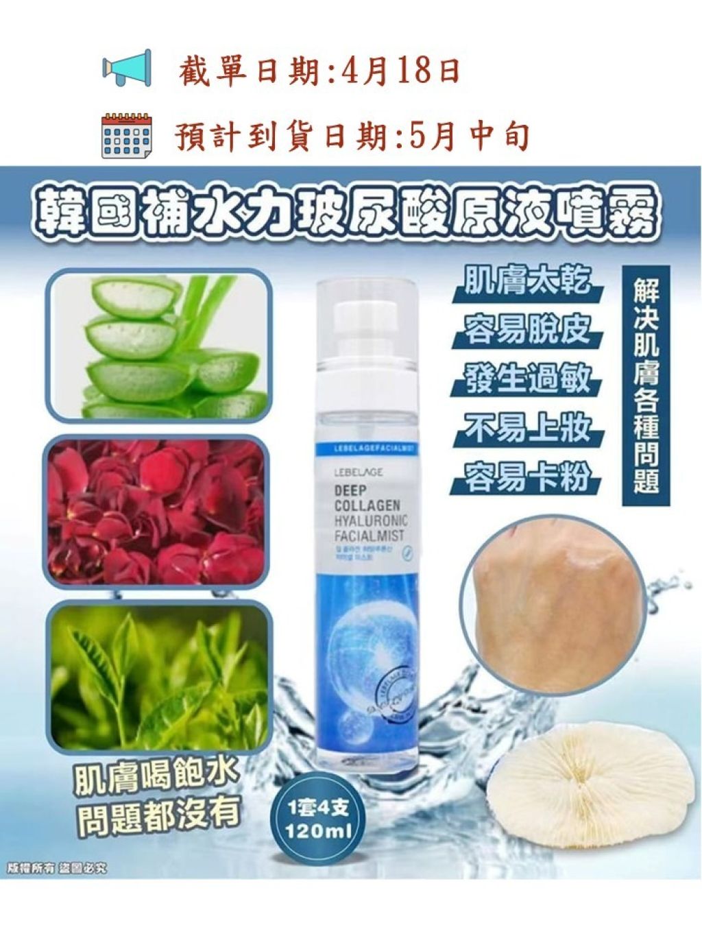 韓國 LEBELAGE 深層膠原透明質酸保濕噴霧 120ml(4支/套)