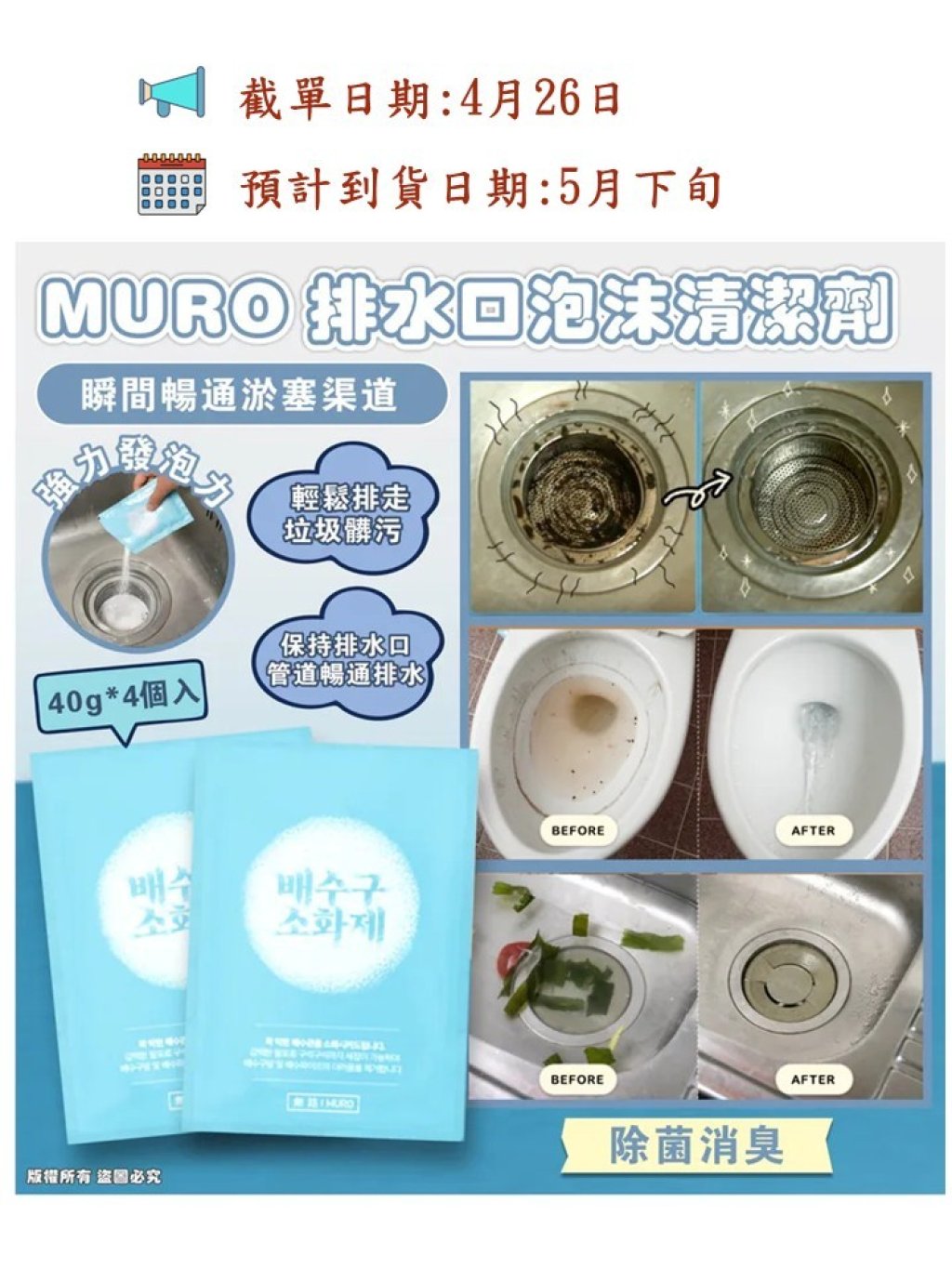 🌸韓國 MURO 排水口泡沫清潔劑 (1盒4包)(2盒/套)