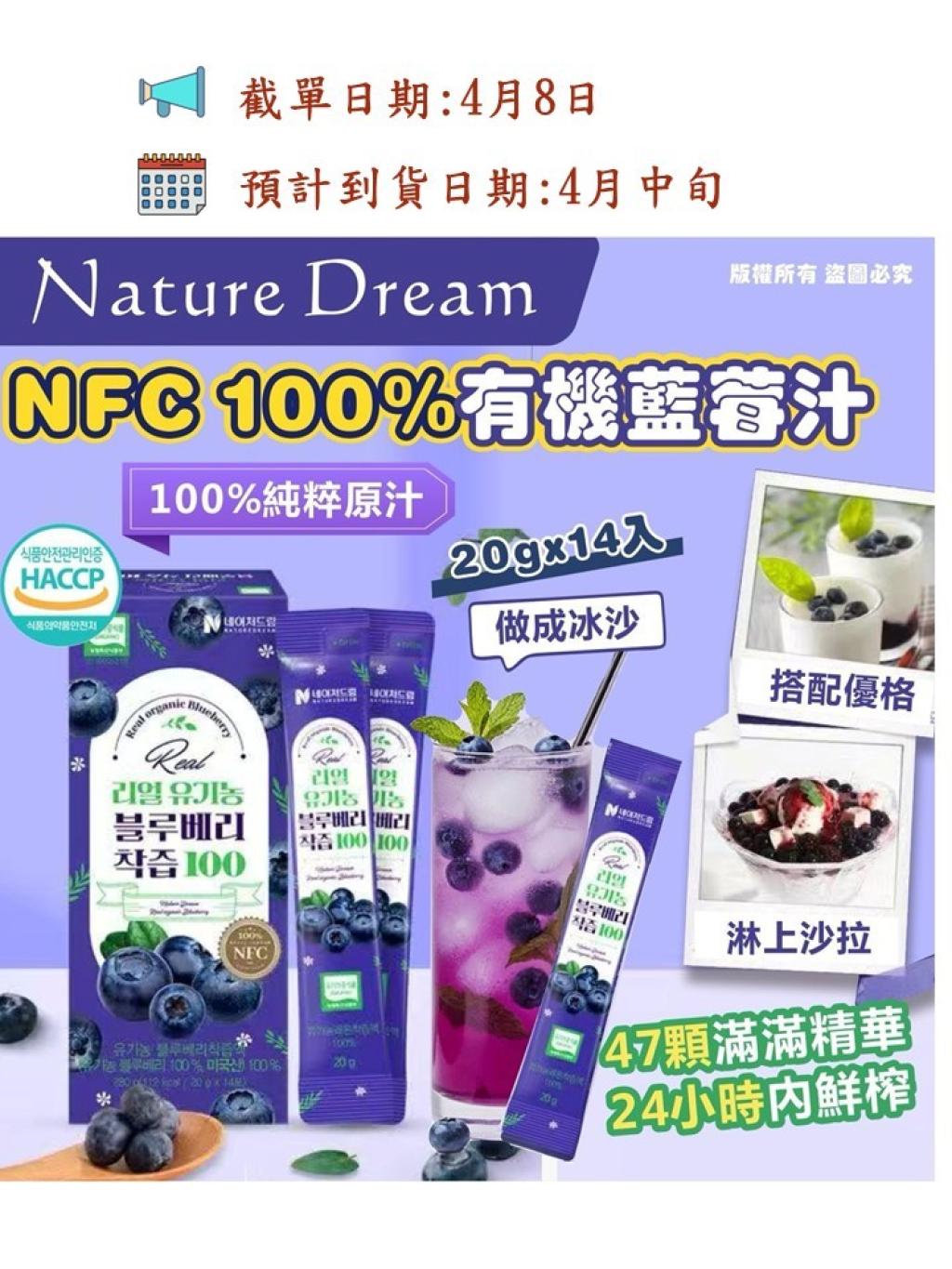 韓國 Nature Dream NFC 100% 有機藍莓汁 (1盒14包)