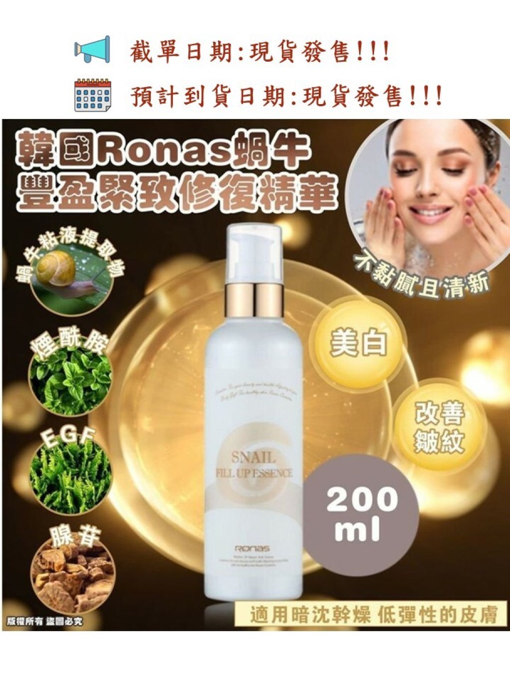 韓國🇰🇷 Ronas蝸牛豐盈緊致修復精華200ml