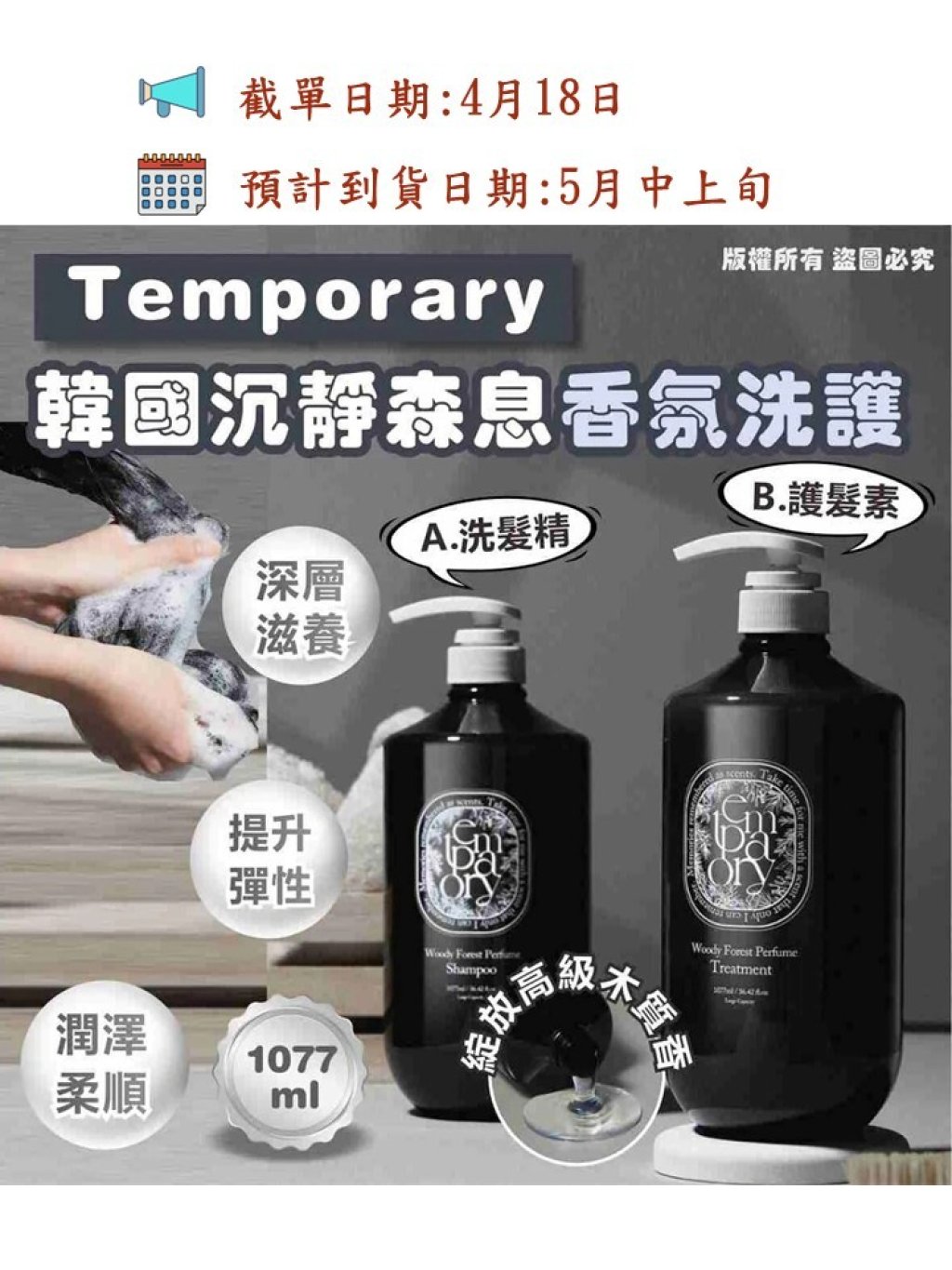 🌸韓國 TEMPORARY 森林木質香氛洗護系列1077ml